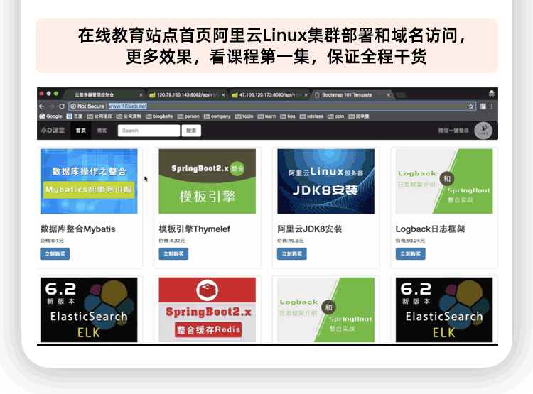 SpringBoot2.x开发在线教育微信支付项目高级实战,2018年6月份新录制,课程分为11章63节课,从需求评审到设计数据库,编码,单元测试,前后端分离,后端采用Nginx集群部署,**阿里云部署上线,购买备案域名,一个真正从零到线上可以访问的项目