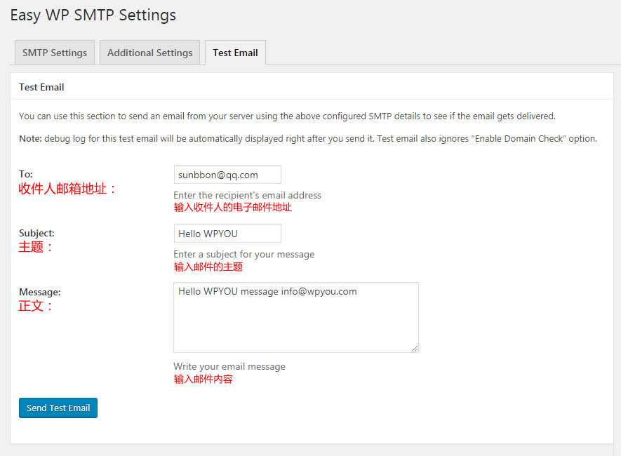 Easy WP SMTP 设置项