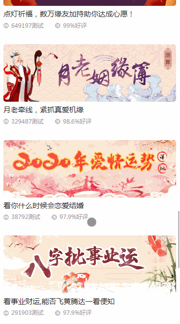 01、2019爱情运 02、八字精批 03、2018运程 04、姓名配对 05、姓名详批 06、综合分析 07、姻缘分析